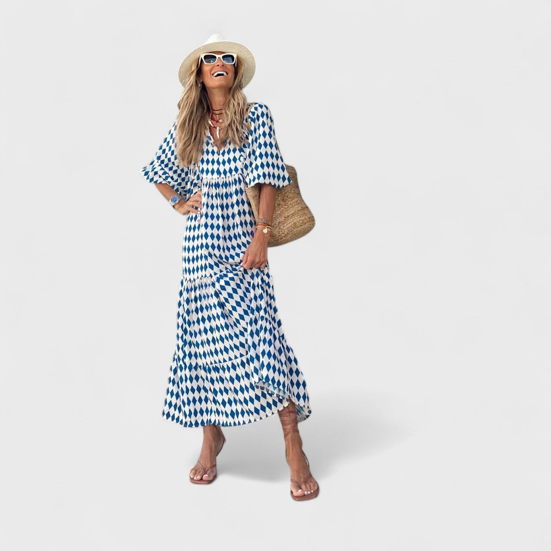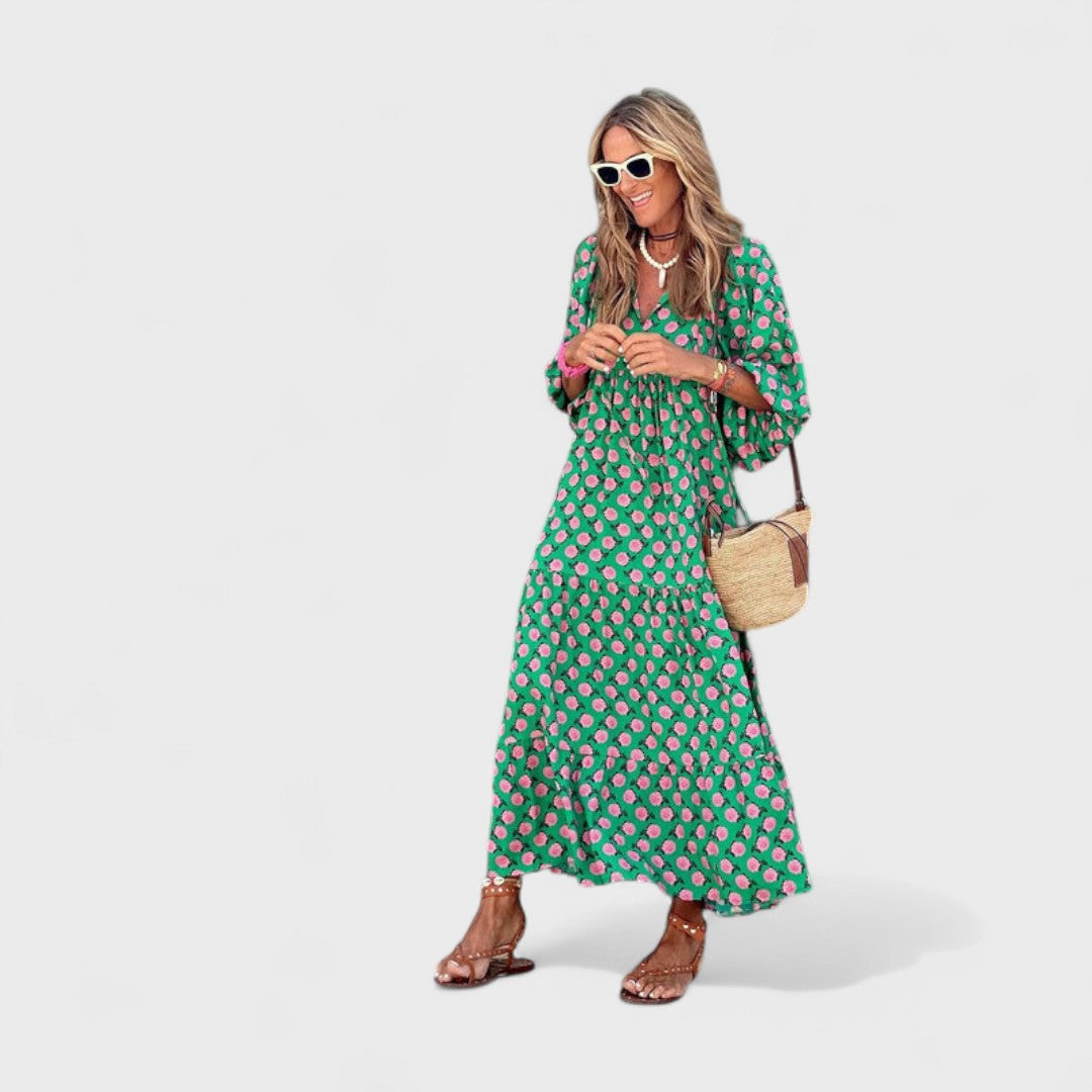 私たちのボヘミアンスタイルの夏のドレスは、あなたのワードローブに欠かせないアイテムです!ユニークなデザインとVネックで、暑い日でもファッショナブルで快適に過ごせます。友達とのブランチから夏の夜のイベントまで、あらゆるシーンに最適な、私たちのお気に入りの一着です!