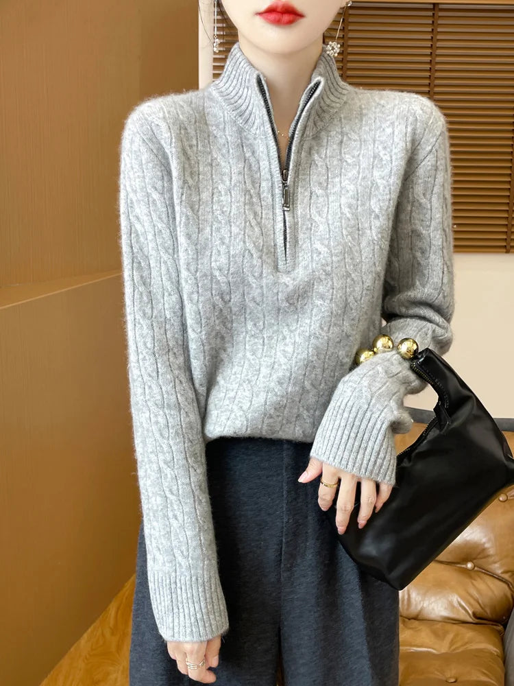 Akane | ケーブル編みカシミアハーフジップニット – Keiko & Yui (Store 1)